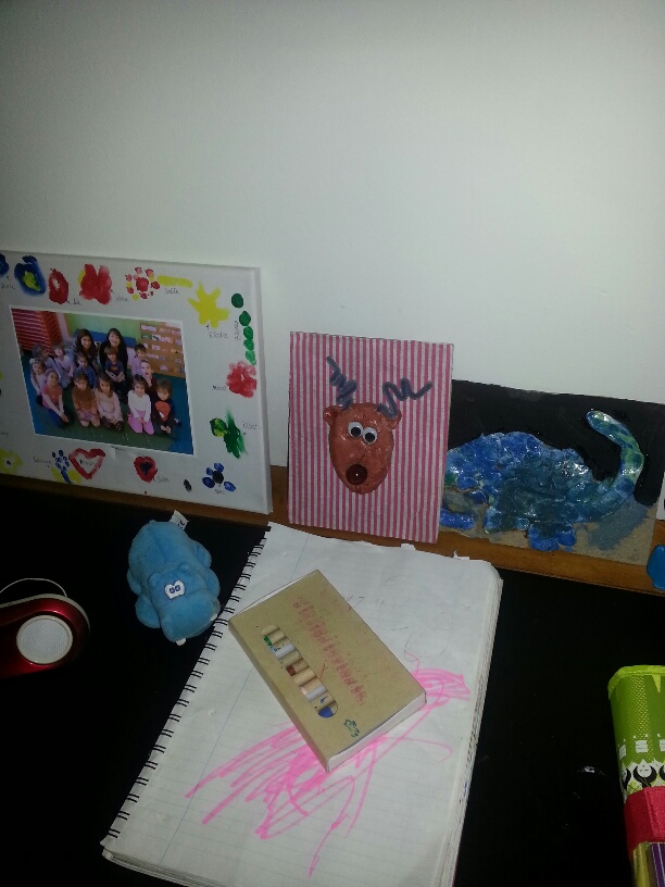 Leo'nun veda gününde sınıfın yaptığı hediye, yılbaşı geyiği ve elbette kendi yaptığı dinazoru!Yatağının başucuna dizilen dinazorlar